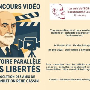 L’Association des Amis de la Fondation René Cassin organise un Concours vidéo « Histoire parallèle des libertés ». Ce concours vous invite à créer une vidéo mettant en rapport un événement historique marquant pour la protection des droits fondamentaux et leur actualité.